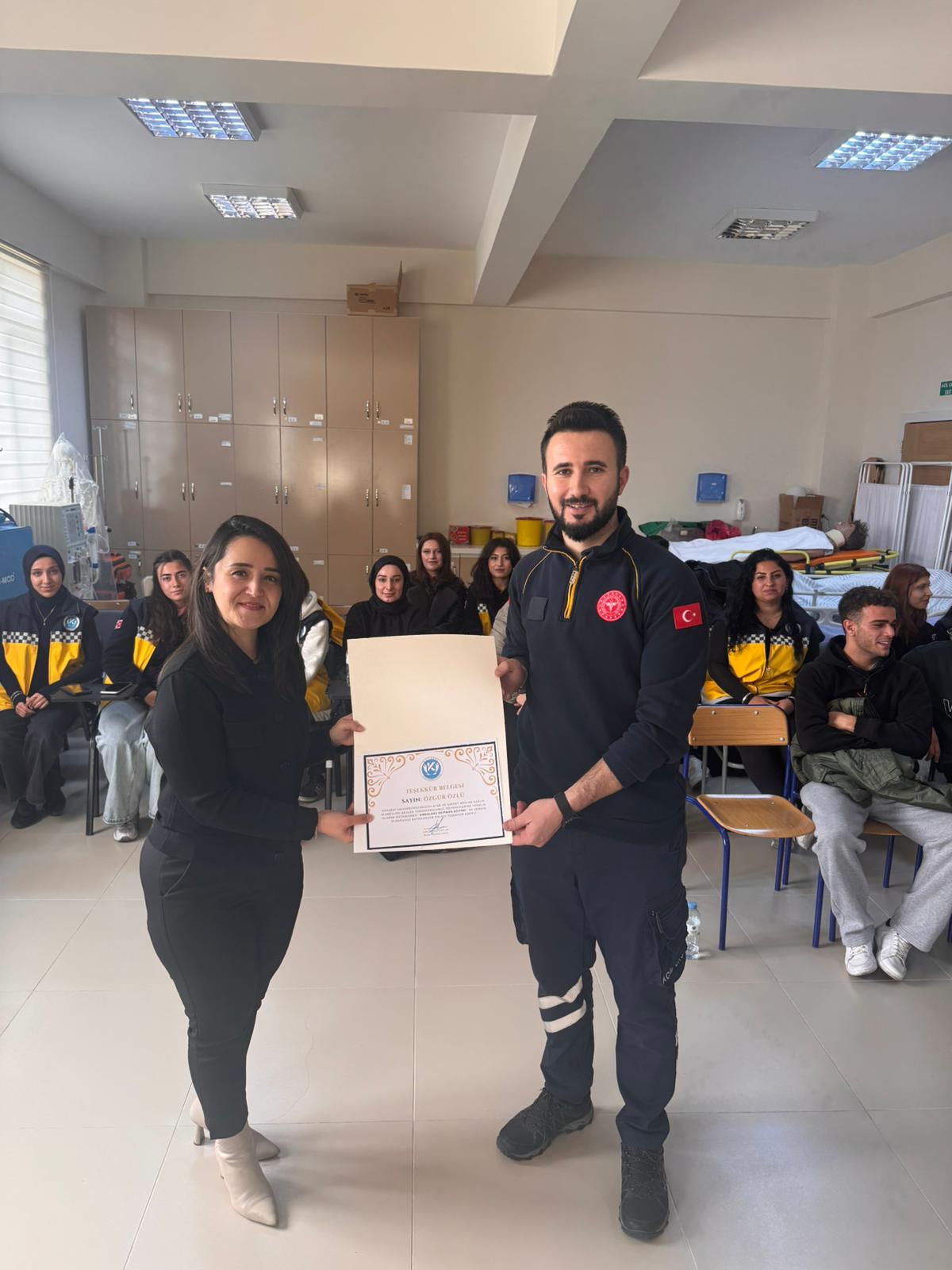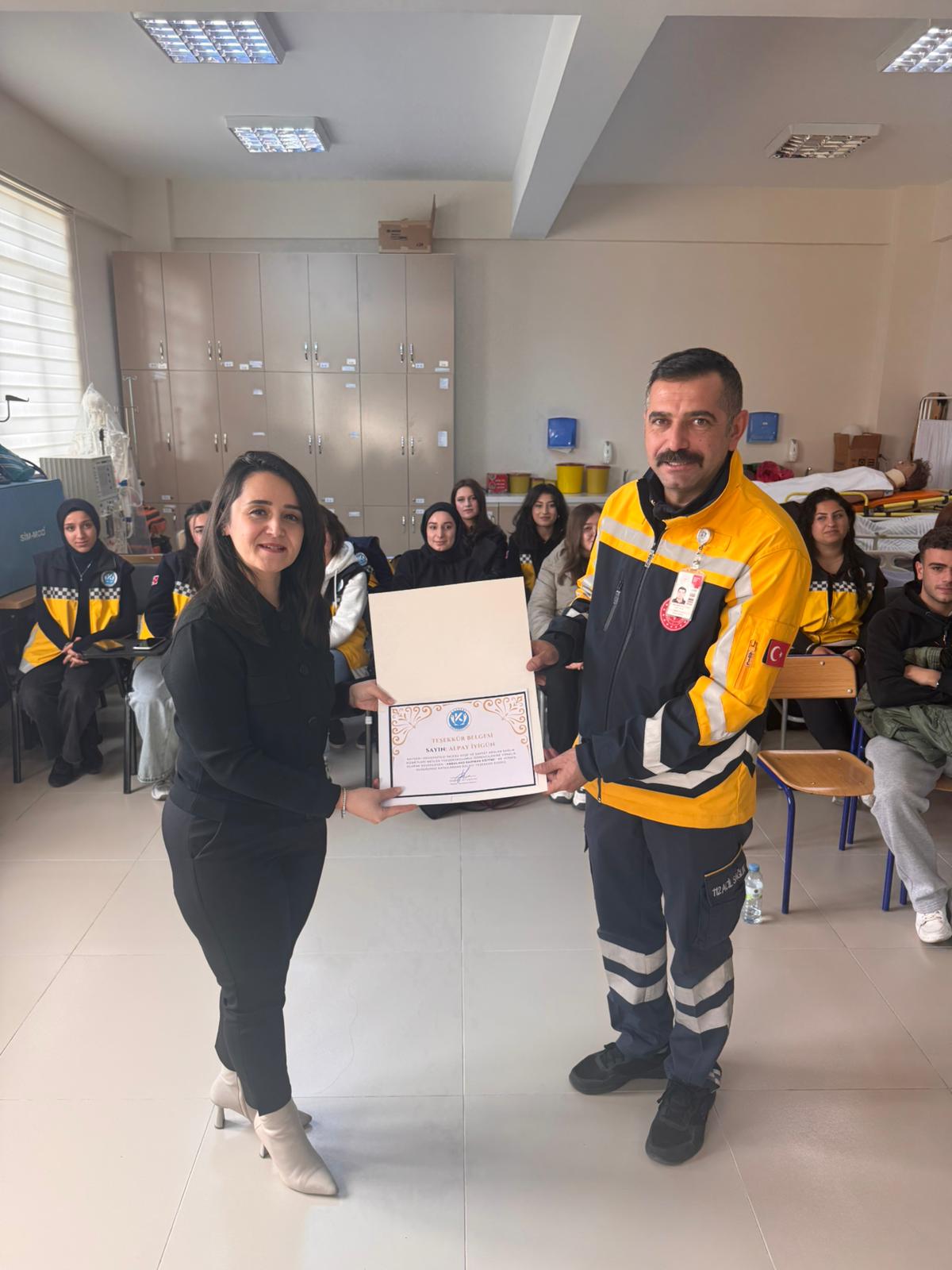 Yüksekokulumuz İlk ve Acil Yardım programı öğrencilerine yönelik Ambulans Servis Eğitimi dersi kapsamında İl Sağlık Müdürlüğü Acil Sağlık Hizmetleri Birimi Uzmanı Prm. Özgür ÖZLÜ tarafından '' Ambulans Ekipmanları Eğitimi'' verildi. Sayın ÖZLÜ' ye ve kıymetli katkılarından dolayı teşekkürlerimizi sunarız.